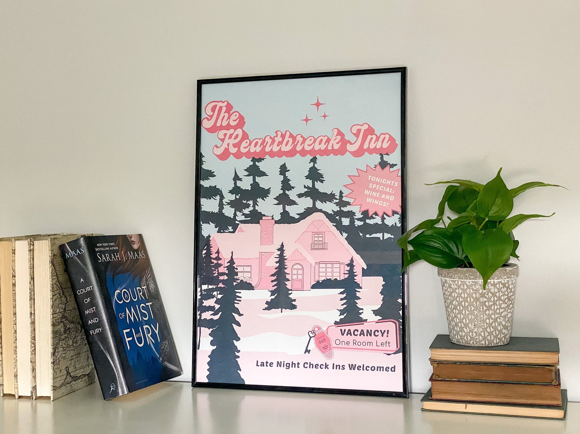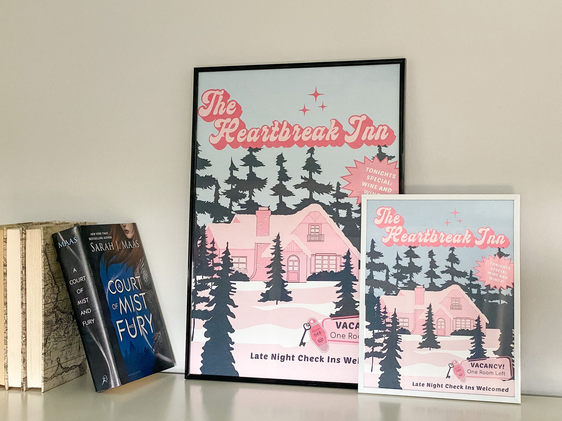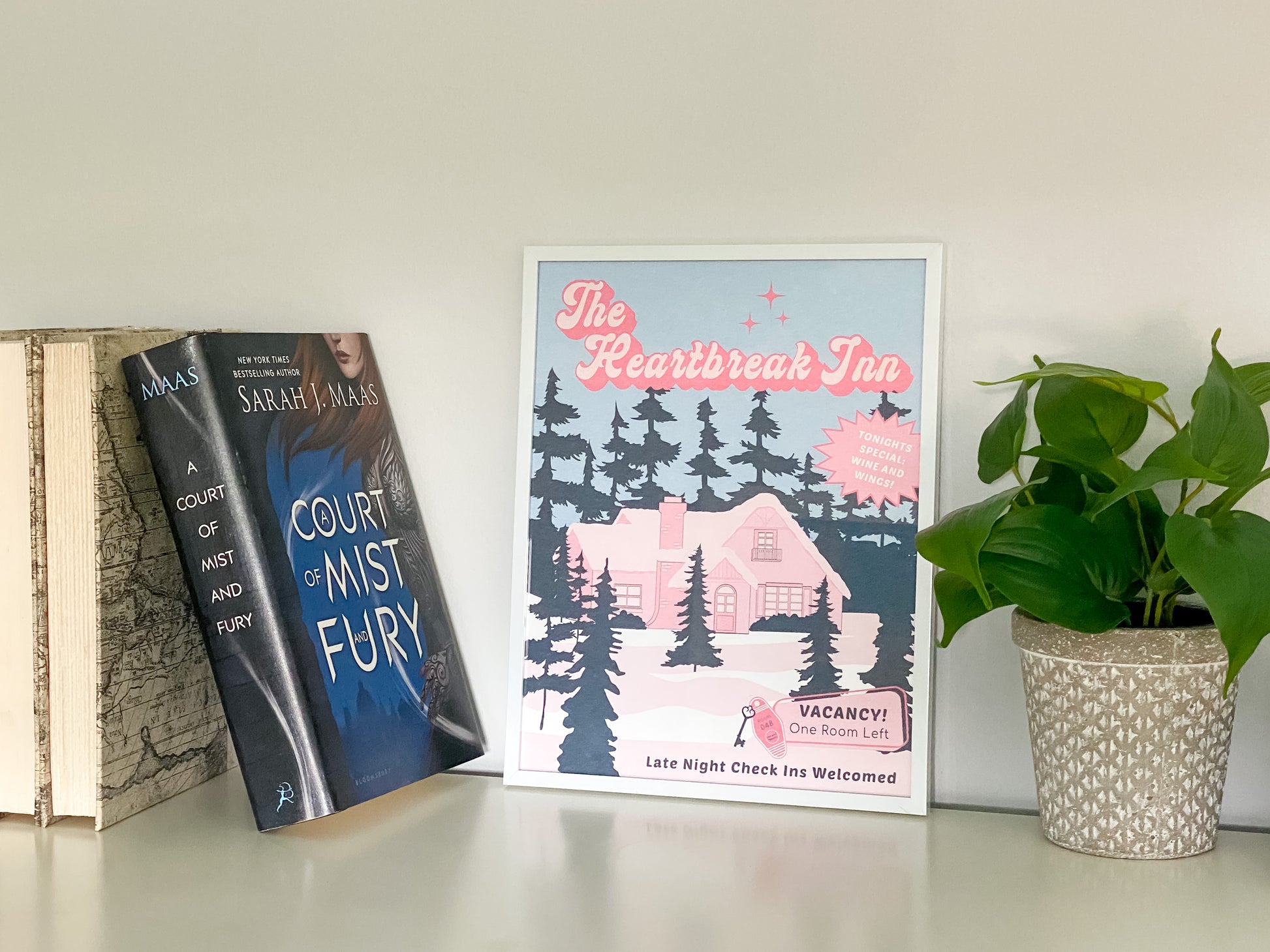 This print is inspired by the inn that, conveniently for us, had one room left with only one bed. Details include the three stars of the Velaris crest, a room key with the chapter number, and a special for wine and wings ;) It also features a texture printed over the image to give a vintage look.